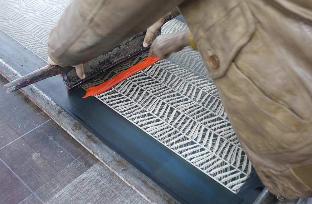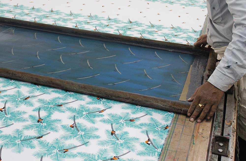 There’s a theory that the name Kerala is derived from the Malayalam words ‘Kara’ and ‘alam’, literally meaning ‘Land of the Coconut Trees.’ Our Coconut Palm Pickers print is a celebration of the lungi clad coconut pickers, whilst the Palm Weave pattern illustrates woven palm fronds used to make traditional thatched homes.