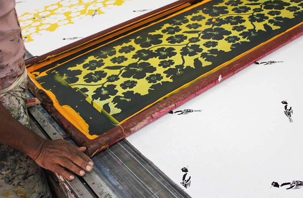 Beautiful 'Village Weaver' birds, bright blooms and sunshine inspired our Yellow Weaver and Hibiscus floral fabrics.