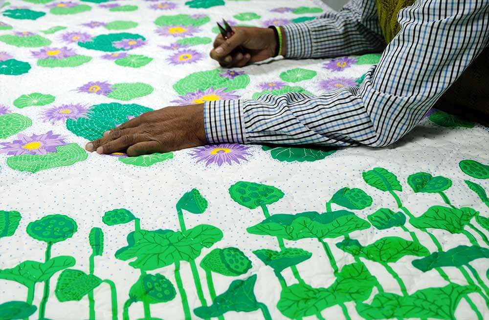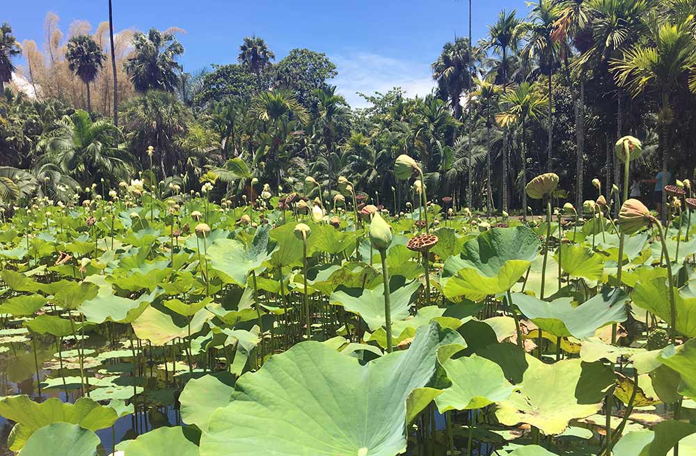 The fabulous giant water lily and lotus ponds in Mauritius's famous Botanical Gardens are illustrated in our vivid green and lilac Lily Pad, Lily Flower and Lotus Stem designs.