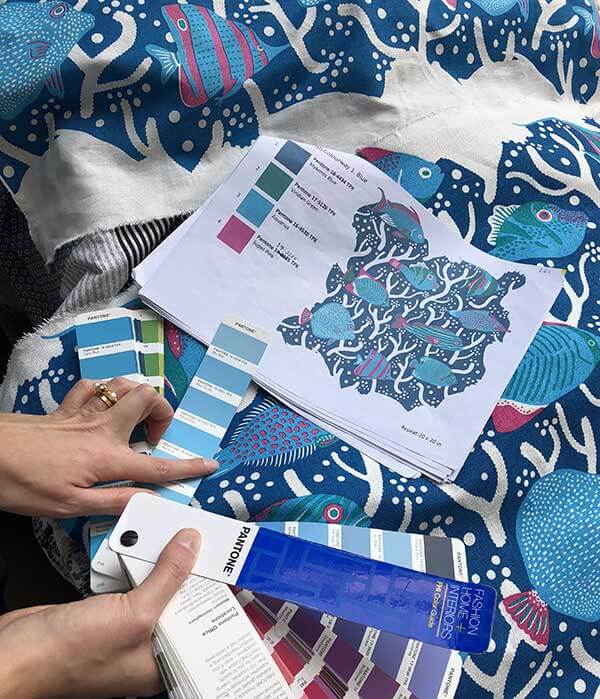 An incredible day snorkelling in the Indian Ocean inspired our Ocean and Coral Reef prints, bursting with tropical fish hand screen printed in blue and pink colourways.