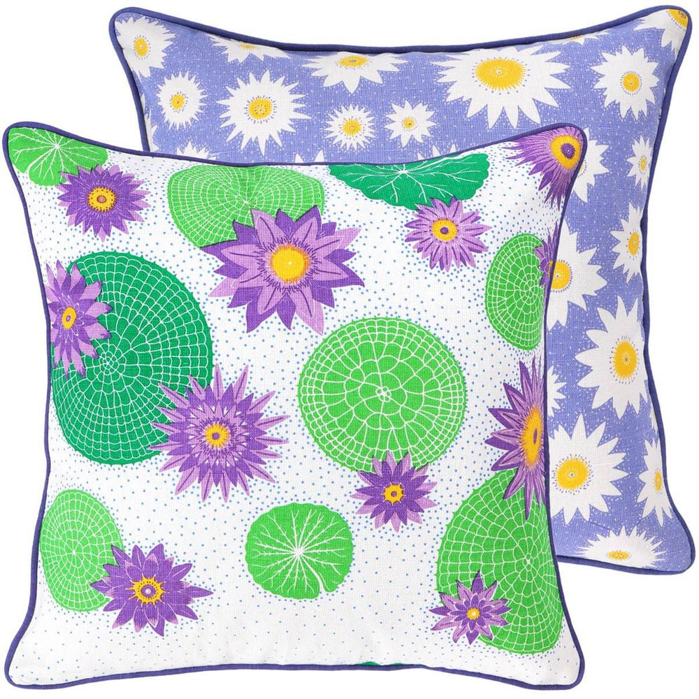 Bring the beauty of the Botanical Gardens into your home with this reversible cushion cover inspired by our travels to Mauritius and hand screenprinted with colourful water lilies.