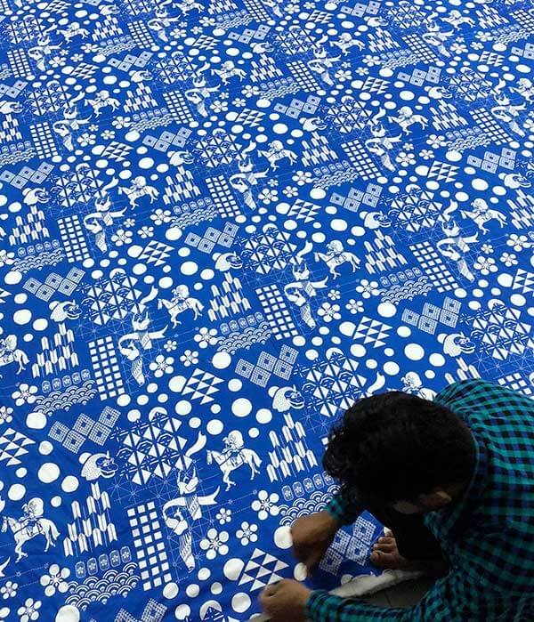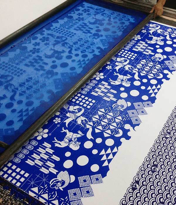 A celebration of festive parades from across Japan, our Festival Print is a modern mix of traditional scenes, emblems and motifs. Paired with our twist on the classic Seigaiha pattern, spot people from the processions amongst the waves.