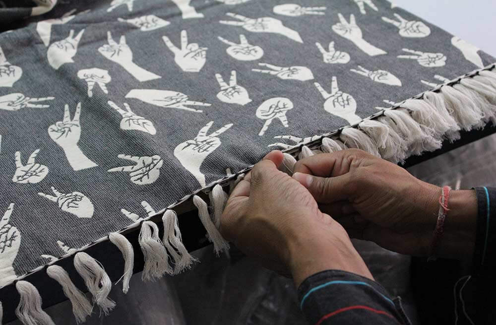A nod to the ‘Peace Sign’ gesture made at every photo opportunity, our Peace Hands design is a fun pattern capturing the playful side of Japan.