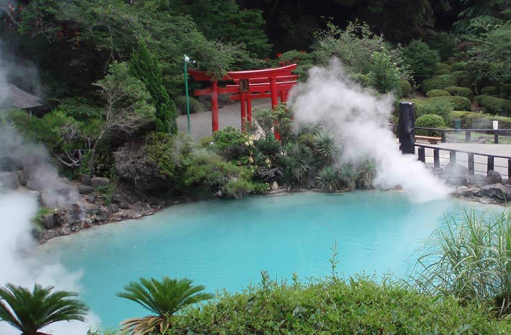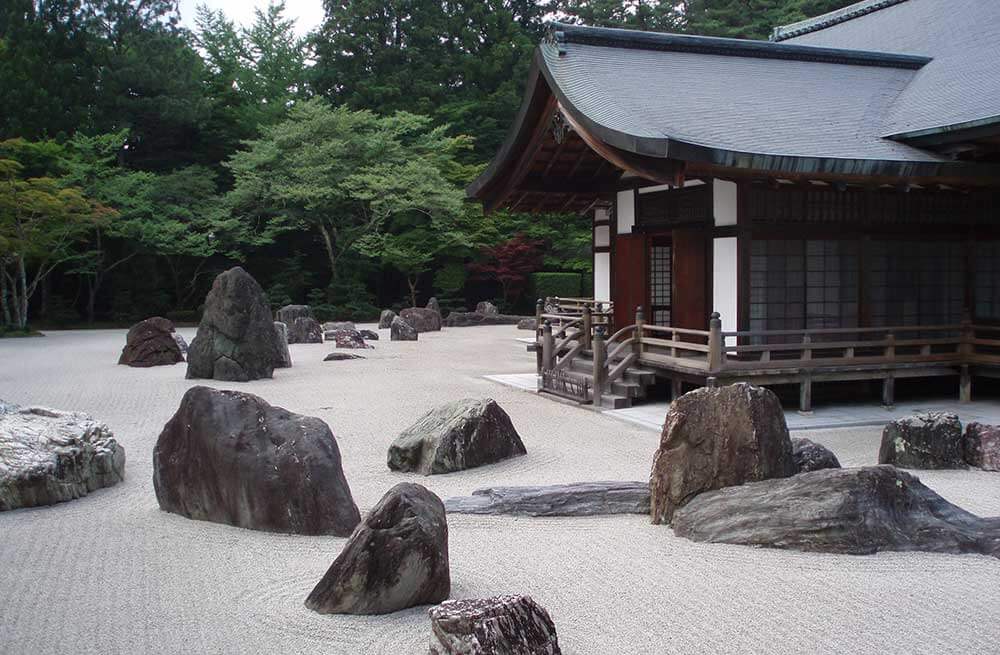 Beautiful, serene Japanese gardens and relaxing, restorative hot springs are illustrated in our calm and peaceful Zen Onsen Garden landscape pattern.