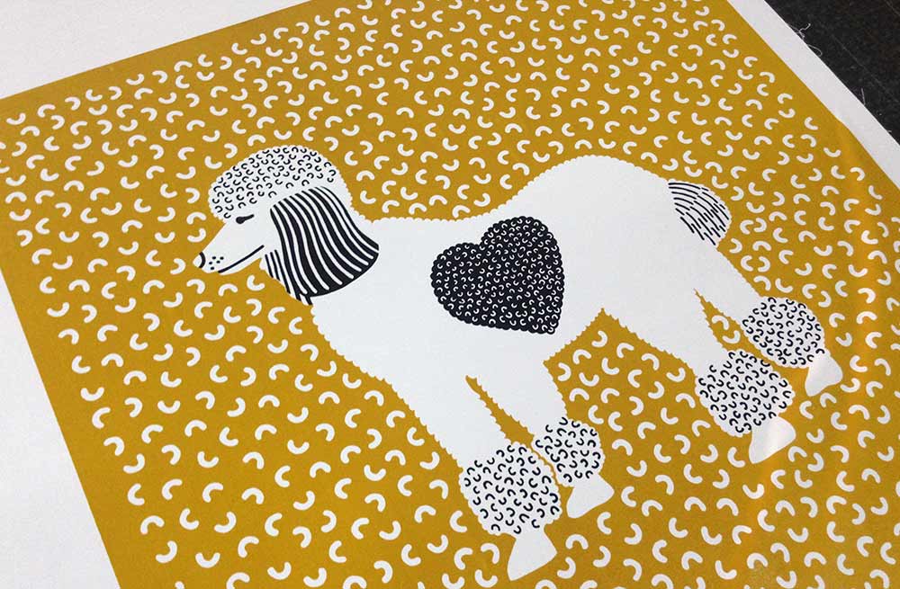 A flamboyantly groomed dog spotted at a wedding party inspired our Poodle print.