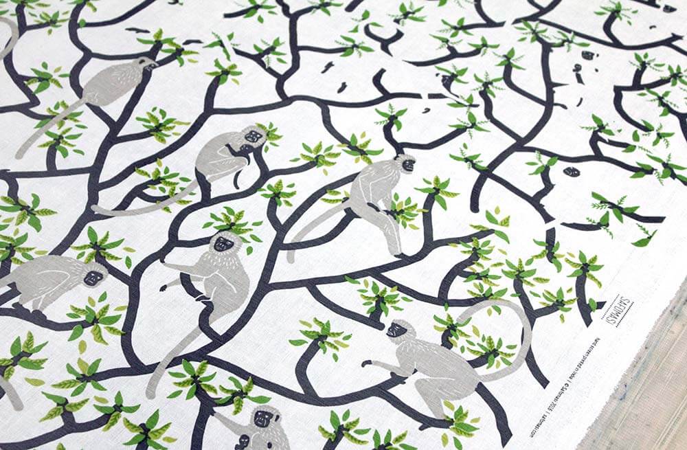 One of our favourite designs in the collection, this was inspired by another ubiquitous sight, the cheeky but elegant Langur. These monkeys gather in groups and jump between branches, shaking leaves onto the forest floor.