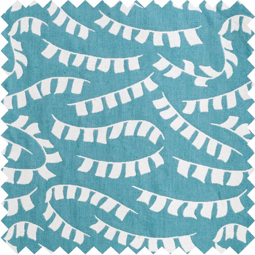 Inspired by the forms of Tibetan Prayer Flags fluttering in the breeze, this double sided cotton jacquard is woven in a calming shade of soft blue-green teal.