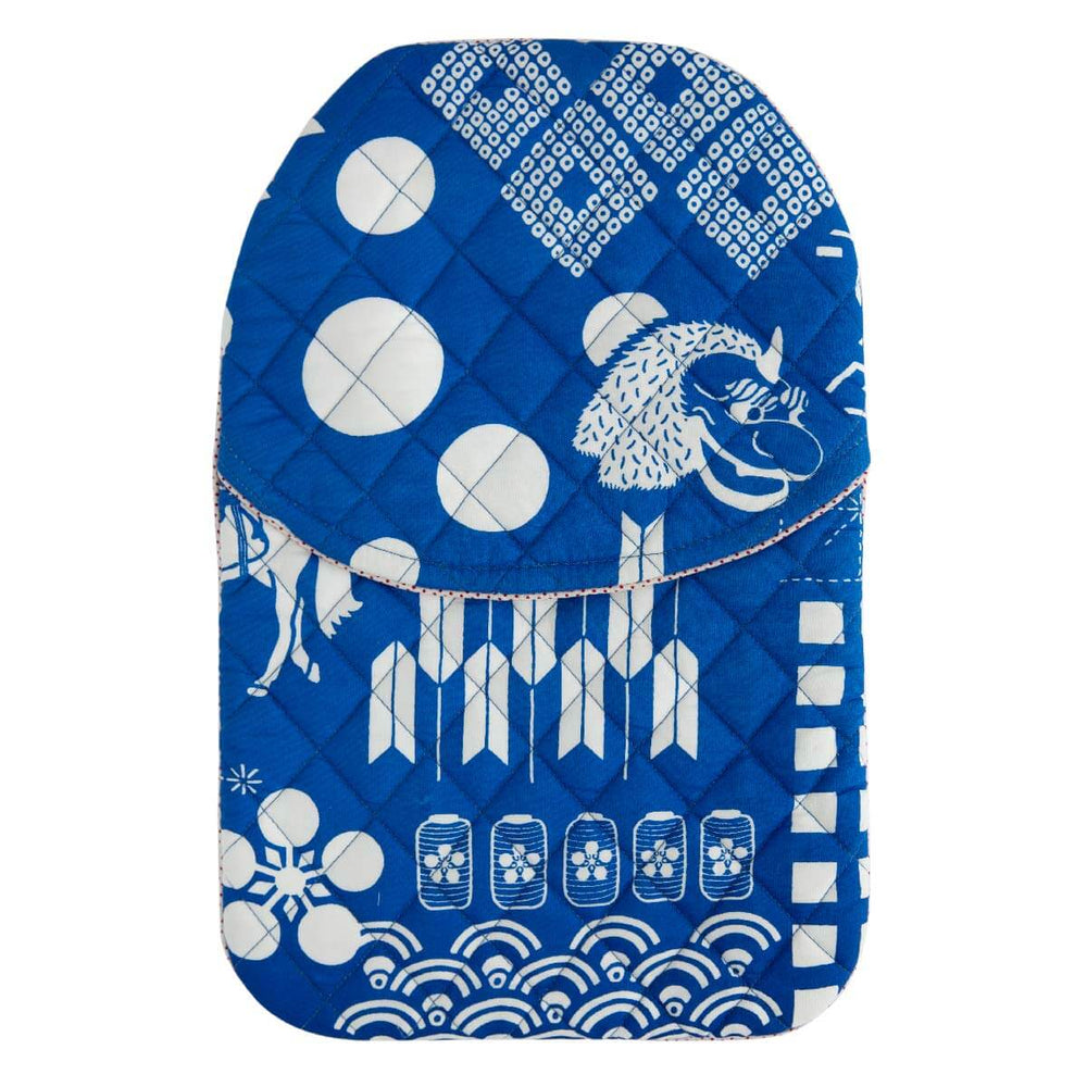 Bold and bright, this cobalt blue quilted hot water bottle cover is inspired by Japanese festivals.