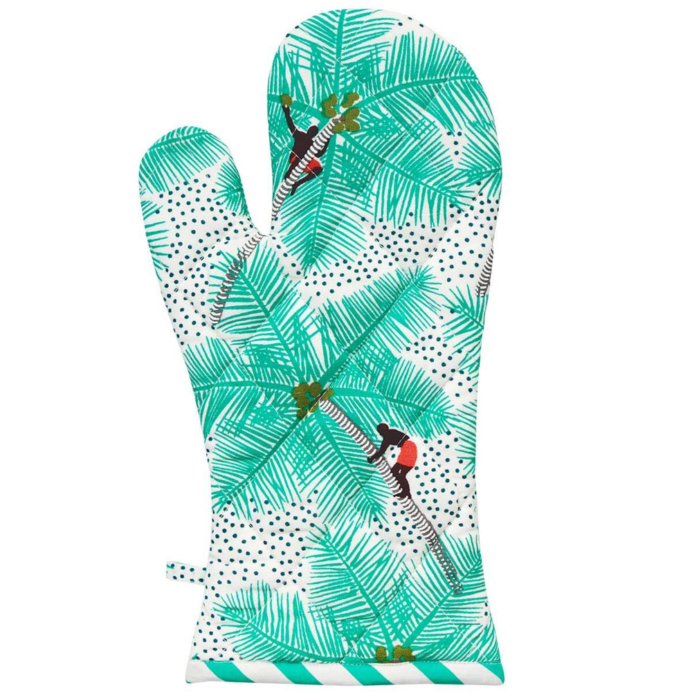 Bring a bright and fresh tropical print into the kitchen with this hand screenprinted oven glove featuring our popular Coconut Palm Pickers pattern.