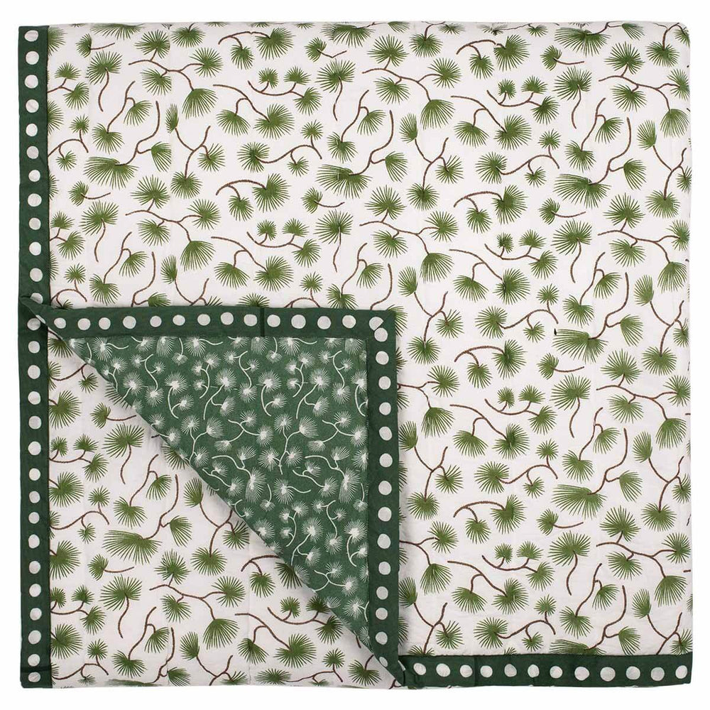 Printed with soothing pine patterns, the Green Pine Baby Quilt is the perfect addition to a neutral, nature inspired nursery. With a white pine branch print on one side, forest green ‘mini pine’ print on the other and playful dot print edging, its timeless design will be loved for many years.