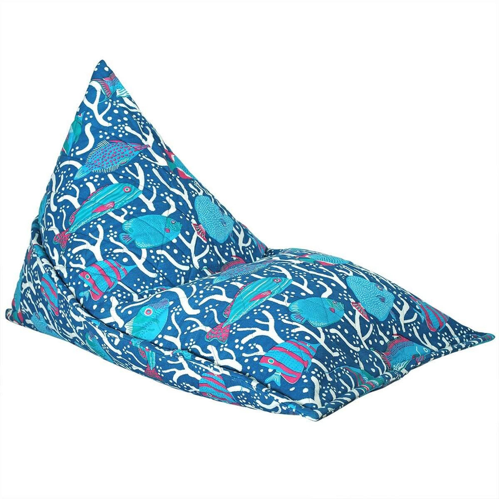 Quilted with cotton, this soft yet strong bean bag features a vibrant blue tropical fish print.
