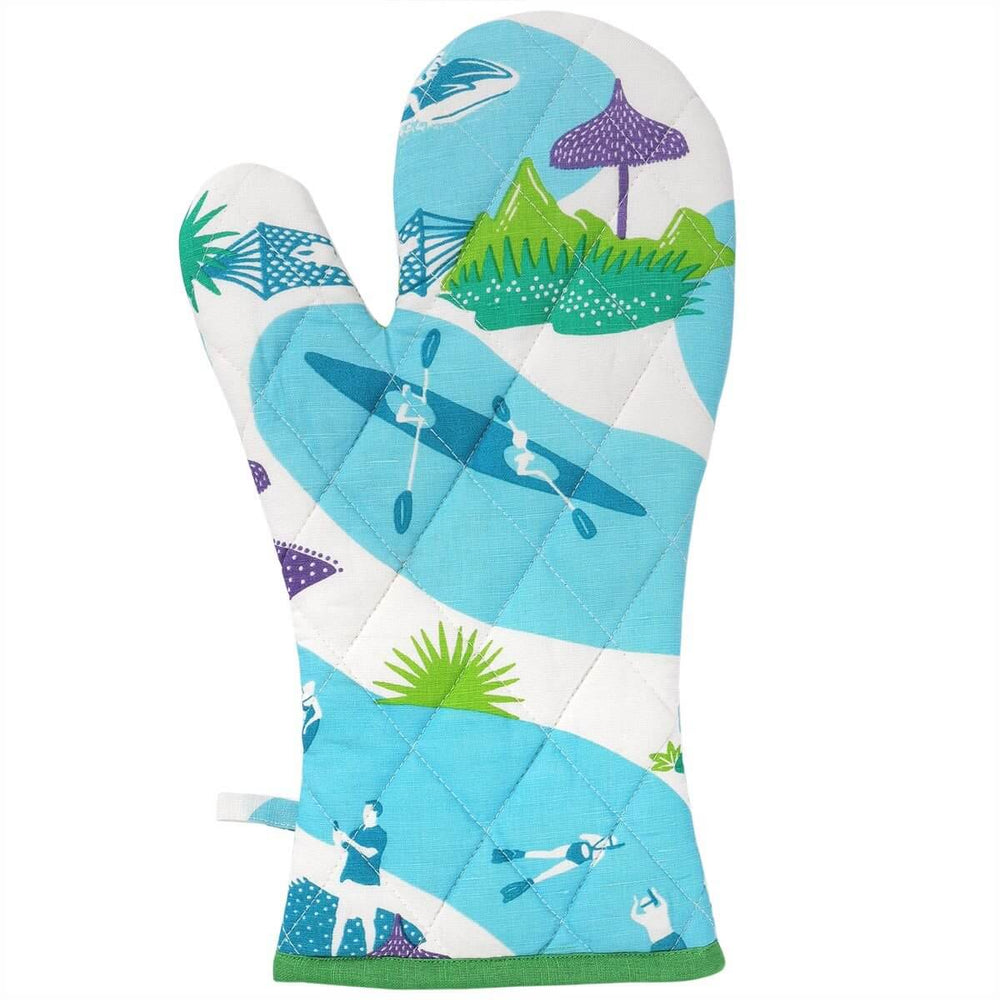 Oven gloves can be fun too! This one is hand screen printed with our lively 'Resort Life' pattern inspired by our travels in Mauritius.