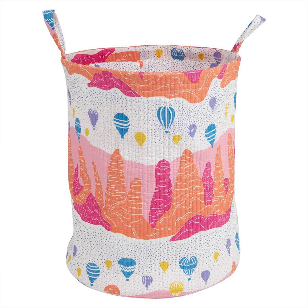 Hand screen printed with our whimsical Fairy Chimney Print, its soft yet durable quilted cotton construction is finished with handles that make it easy to pick up and move between different rooms.