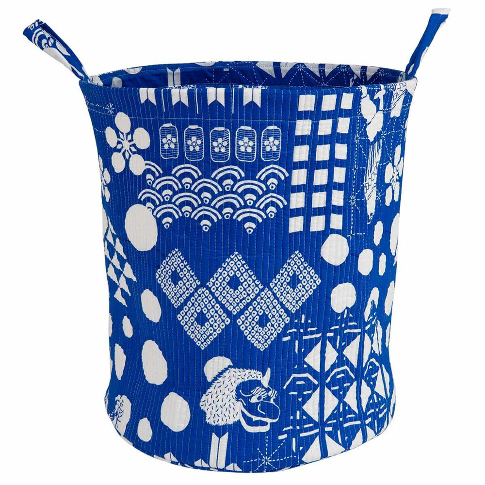 Hand screen printed in bright cobalt blue with our original 'Festival' pattern inspired by travels in Japan, it adds a touch of personality to your space whilst becoming a practical home for all sorts of bits and bobs.