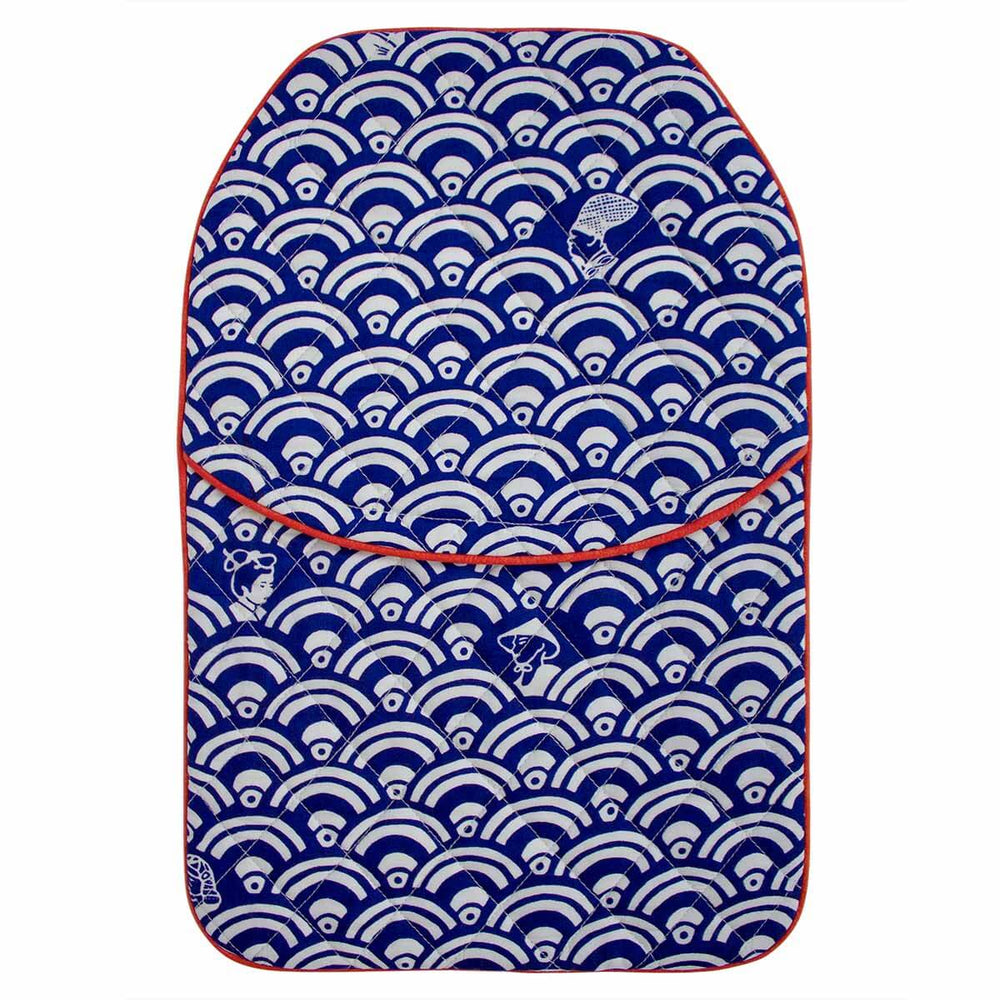 A twist on the traditional Japanese 'Seigaiha' pattern, the handprinted design on this hot water bottle cover features characters inspired by festive processions seen on travels in Japan.