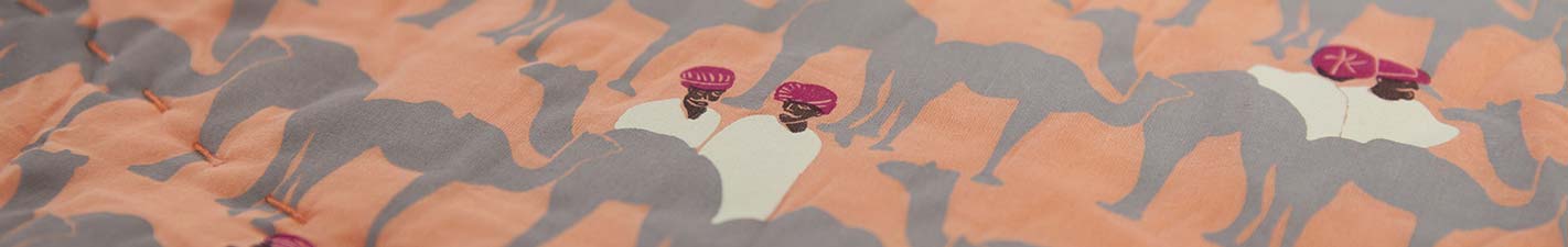 Shop our ELLE Décor Award Winning Pushkar collection cushions, hand screen printed and adorned with handmade pom poms and tassels.