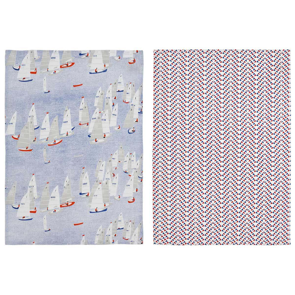A charming set of 2 nautical tea towels, handprinted with illustrations of yachts racing and a cheery bunting pattern. They'll fit right at home in a coastal-style interior and make an inspired gift for a keen sailor.