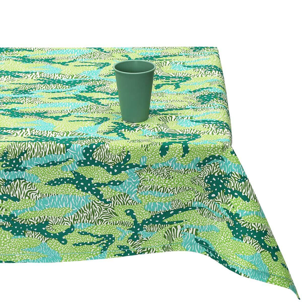 Jungly green hues and a wild mix of animal print and camouflage make for a bright and fresh table setting. Handprinted onto high quality cotton linen, it is beautifully finished with a mint green stitched border.