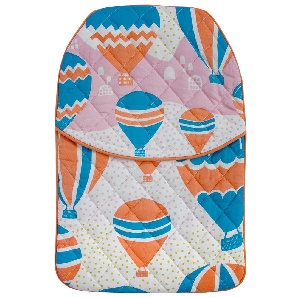 Handprinted with a charming hot air balloon scene in colourful shades of blue, orange and pink, this quilted hot water bottle cover makes a gorgeous gift.
