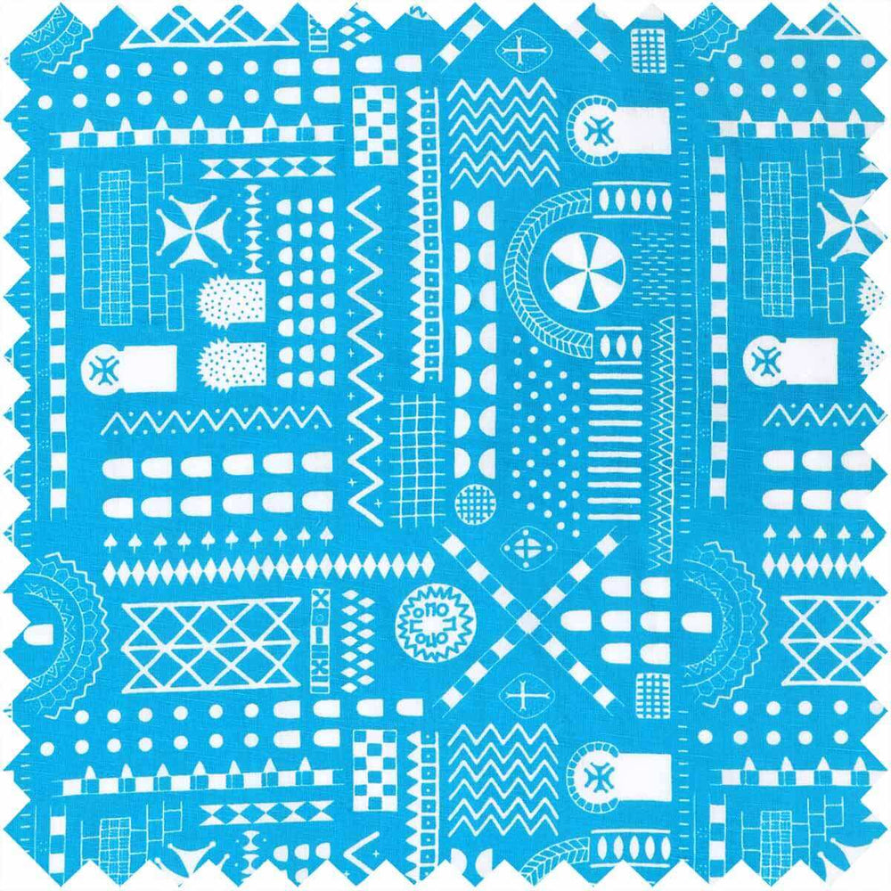 Hand screen printed in a gorgeous vivid blue, the versatile geometric print on this cotton linen makes it suitable for many projects, including upholstery, curtains, blinds or a headboard.