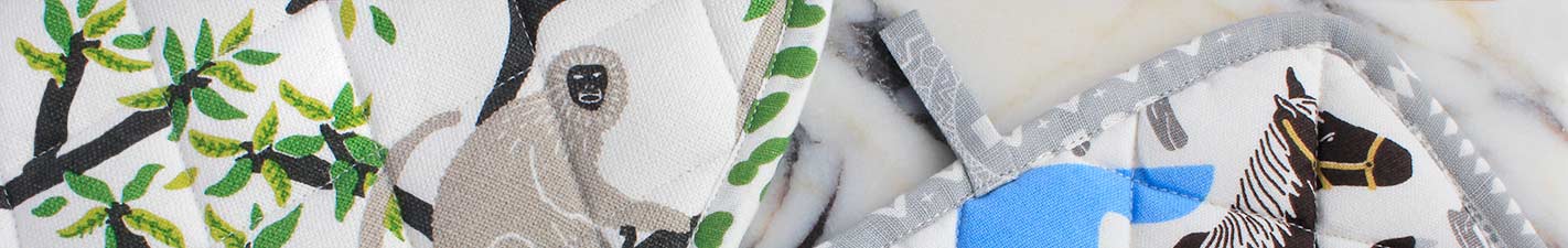 Brighten up your kitchen with quirky printed oven gloves, oven mitts, tea towels and pot holders. Our cheery kitchen accessories also make a great gift for people that love to cook.