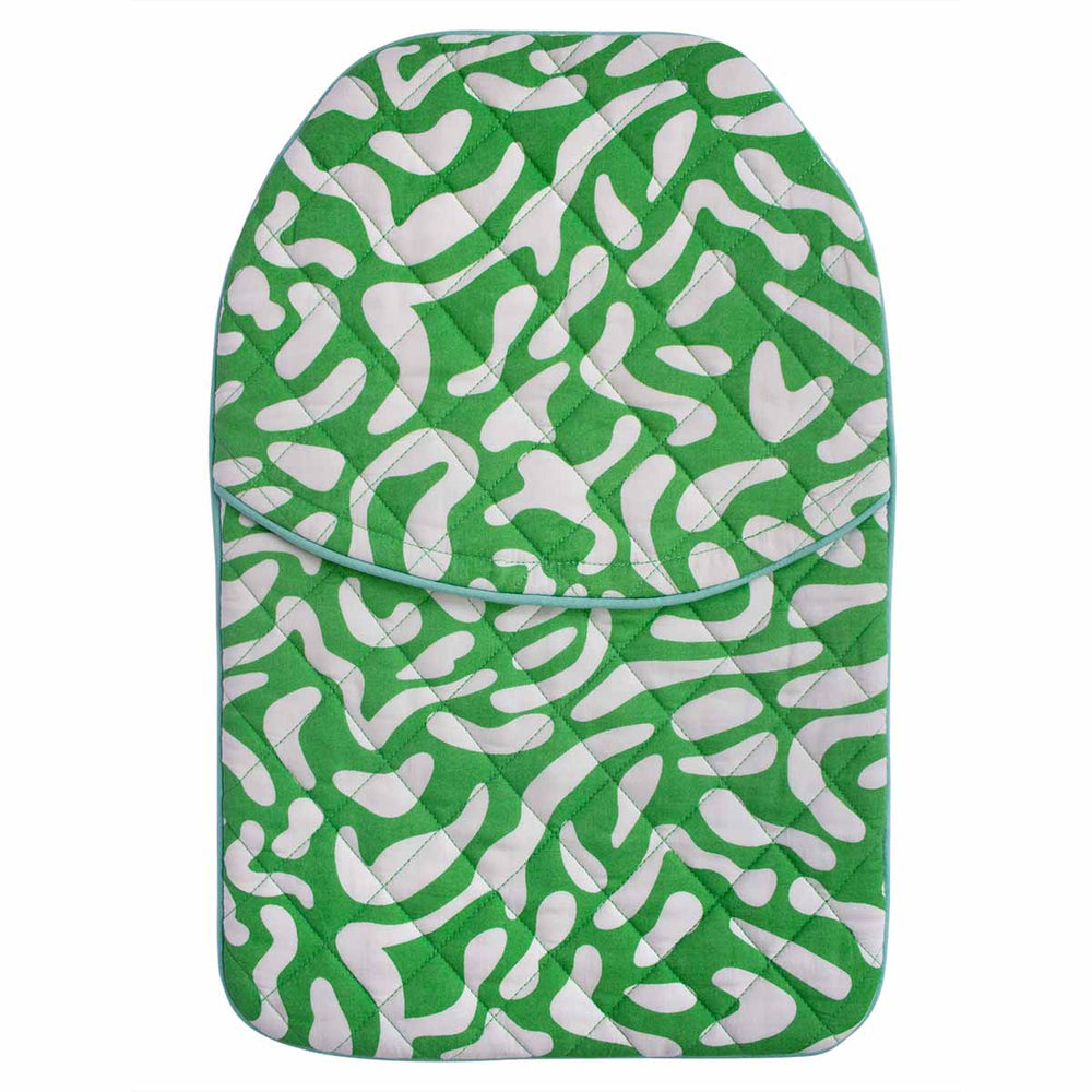 A gorgeous green hot water bottle cover, beautifully made from soft quilted cotton.