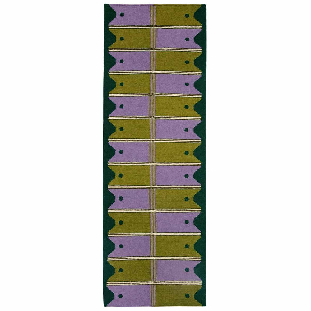 Handwoven in complementary shades in a checkered pattern, this olive green and purple flatweave runner rug is inspired by and named after the 'Ladder' roads off North London's lively Green Lanes and ideal for bringing a pop of colour to a hallway, landing, bedside or any area that could benefit from a little colour and texture.