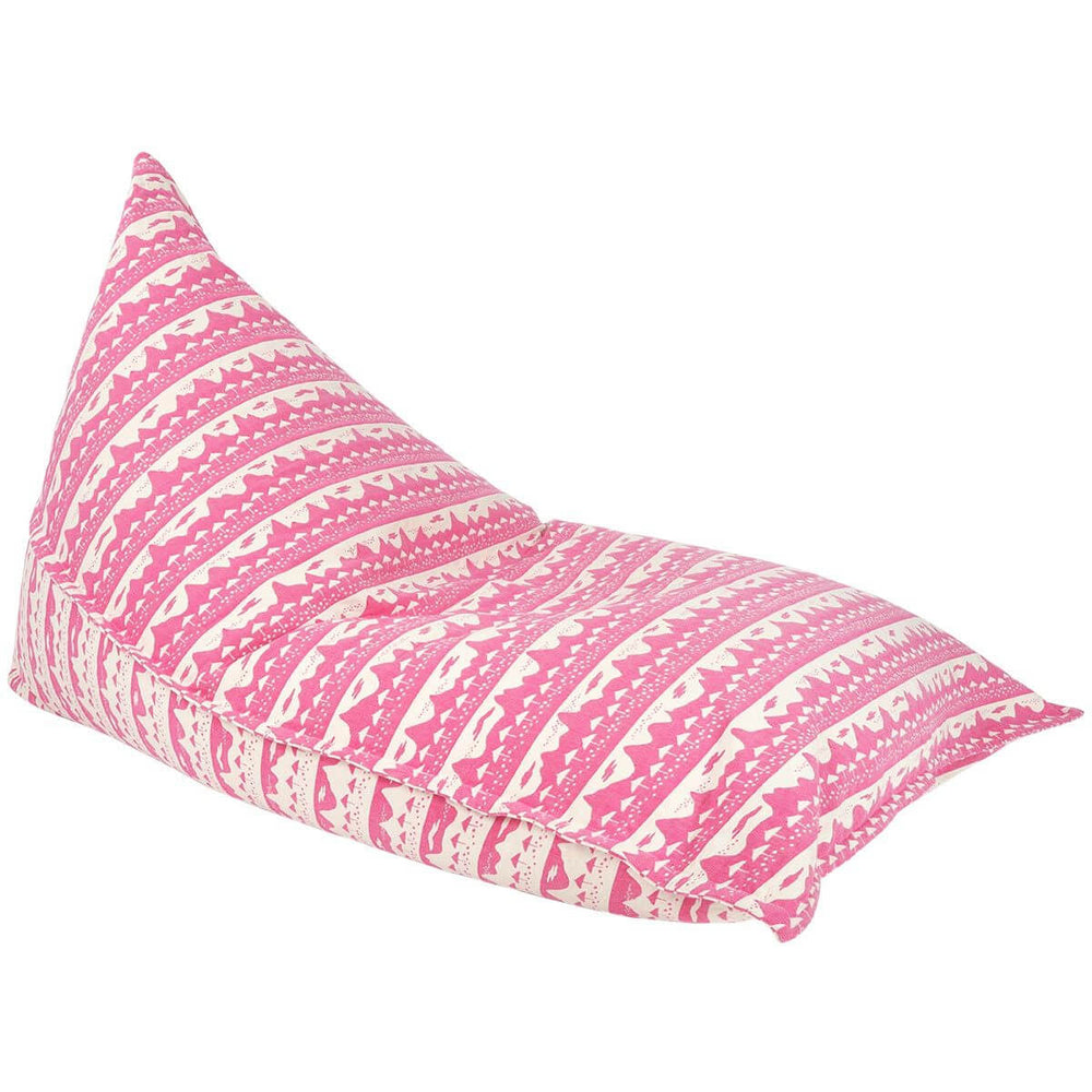 This pink triangle shape bean bag is woven with a stripy pattern of beach huts and mountains inspired the coastline of Mauritius, specifically Belle Mare beach! Available in two sizes suitable for both adults and kids, it is perfect for a living room, child's bedroom, playroom, or any place in your home where you want a quiet corner to read and relax.