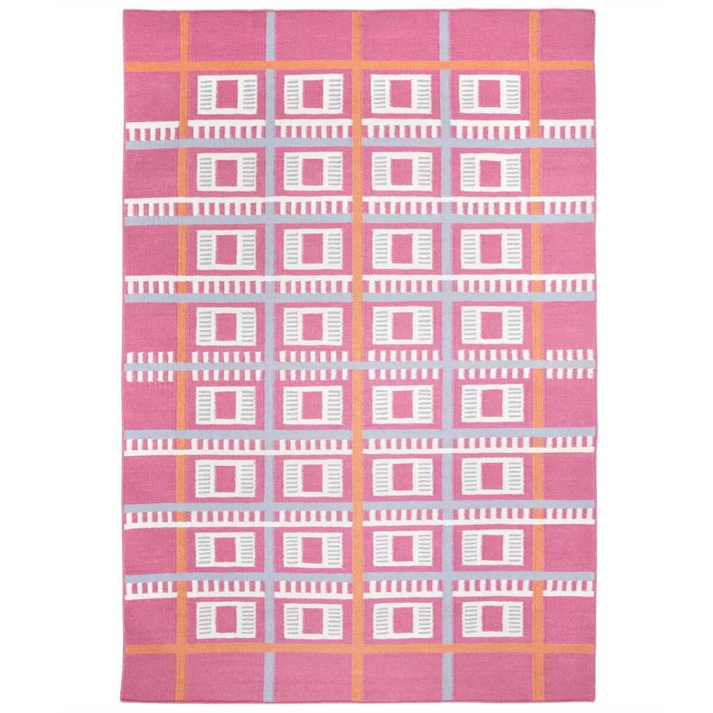 Gorgeous Pink Rug handwoven with a checkered grid pattern.
