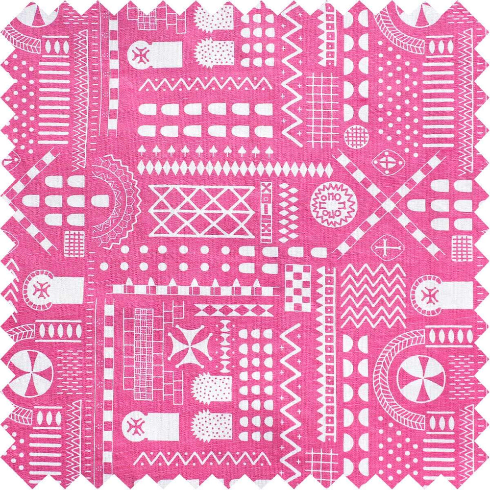 Hand screen printed in a beautiful bright pink, the versatile geometric print on this cotton linen makes it suitable for many projects, including upholstery, curtains, blinds or a headboard.